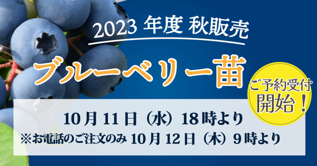 お知らせ 2023年ブルーベリー苗販売 10月11日(水)よりご予約受付開始!! いつもオーシャン貿易オンラインショップブログをご覧いただき誠にありがとうございます! / 大変お待たせいたしました! 2023年度のブルーベリー苗販売について予約受付開始日が決まりましたのでご案内いたします! / / / 苗のご予約受付開始... 2023.09.27 お知らせサザンハイブッシュ系ブルーベリー苗ラビットアイ系