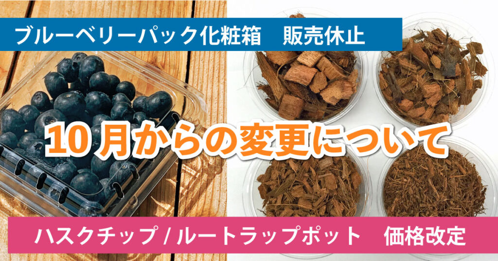 ニューウインズパック 10月よりパック・化粧箱類の販売休止、一部商品の価格改定がございます いつもオーシャン貿易オンラインショップブログをご覧いただき、誠にありがとうございます! 10月より一部商品につきまして販売休止・価格改定がございますのでお知らせいたします。 ブルーベリーパック/化粧箱の販売休止について ブルーベリー用のパッ... 2023.10.01 ニューウインズパックのぼり/シール 他ポット類価格改定/規格変更のお知らせ果実用パック/化粧箱欠品/販売終了のお知らせ